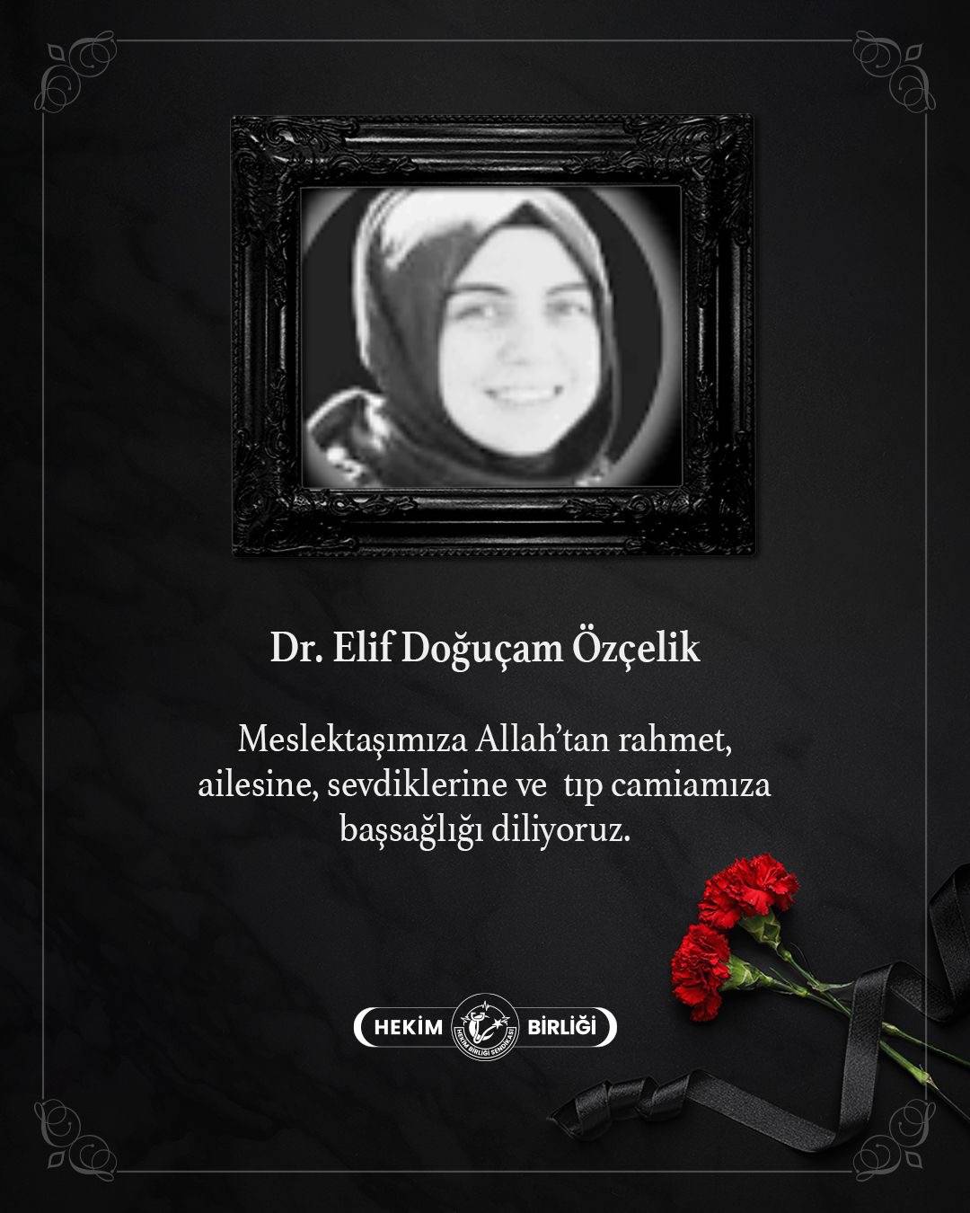 Konu hakkında açıklama yapan Hekim Birliği Sendikası, X hesabından şunları bildirdi, “Ankara Bilkent Şehir Hastanesi’nde görev yapan i meslektaşımız Dr. Elif Doğuçam Özçelik’in vefatını öğrenmenin üzüntüsü içindeyiz. Meslektaşımıza Allah’tan rahmet, ailesine sevenlerine ve camiamıza başsağlığı diliyoruz” (BSHA / Bilim ve Sağlık Haber Ajansı)