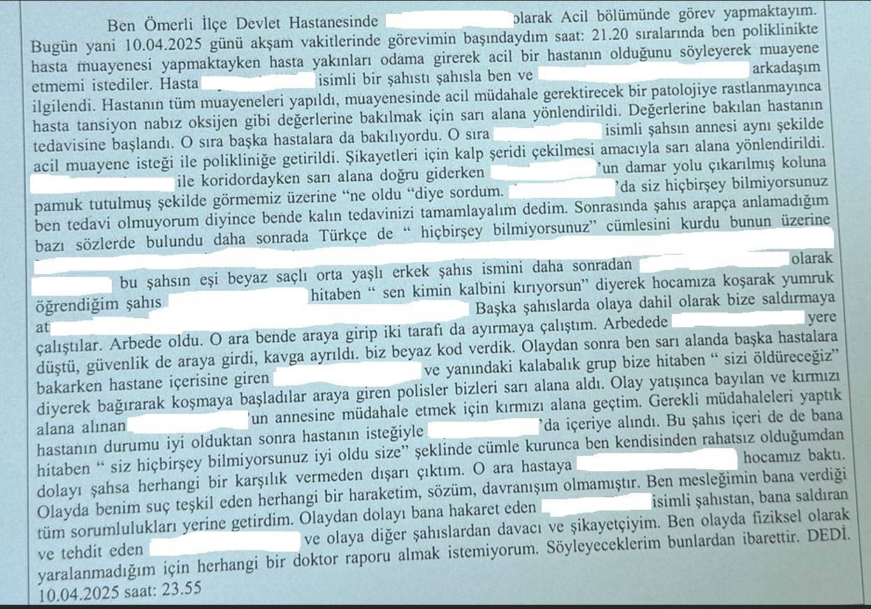 Mardin Ömerli Devlet Hastanesinde hasta yakınları hekim ve sağlık personellerini darp etti, yetmedi ölümle tehdit etti.